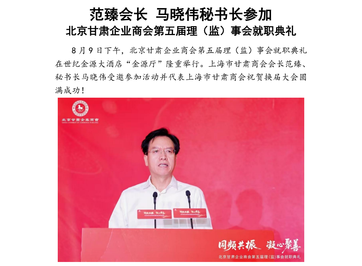 范臻会长 马晓伟秘书长参加北京甘肃企业商会第五届理(监)事会就职典礼