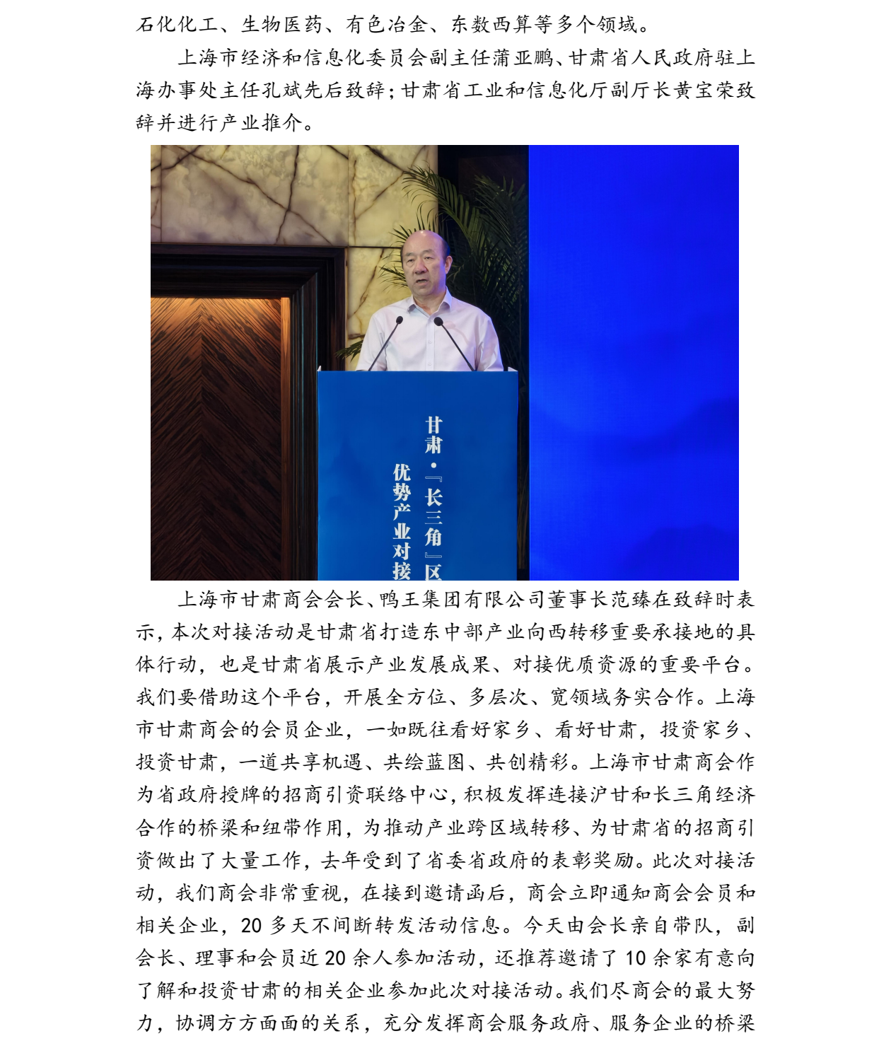 范臻会长率20余名会员参加甘肃·“长三角”区域优势产业对接活动