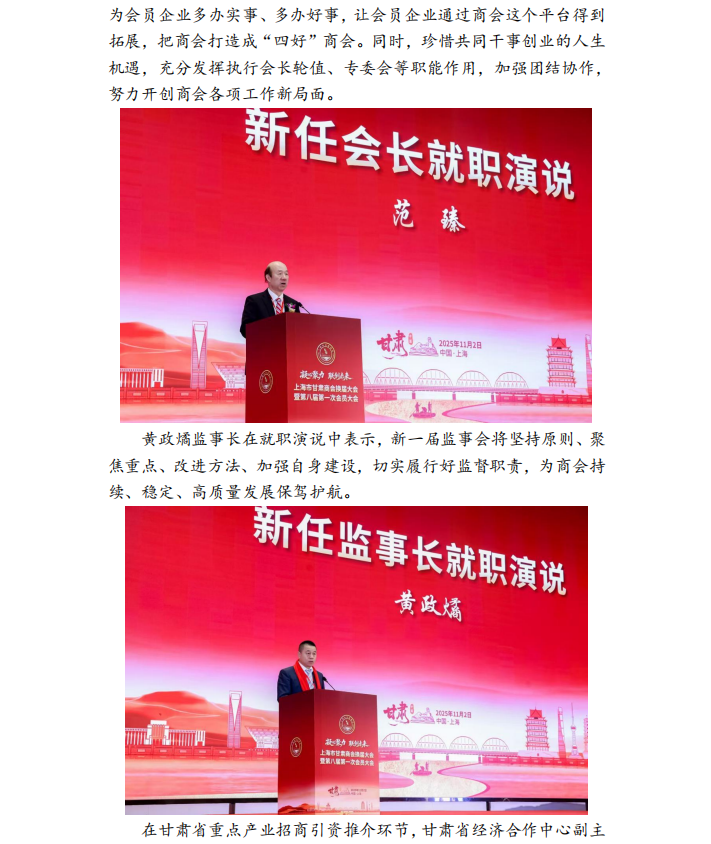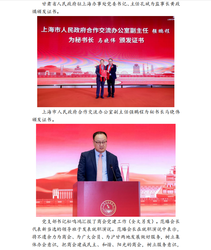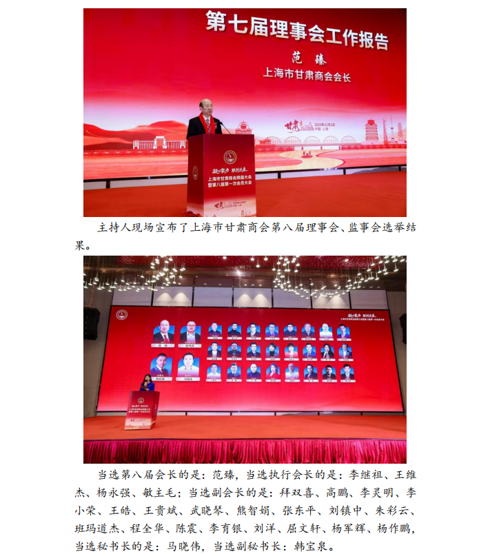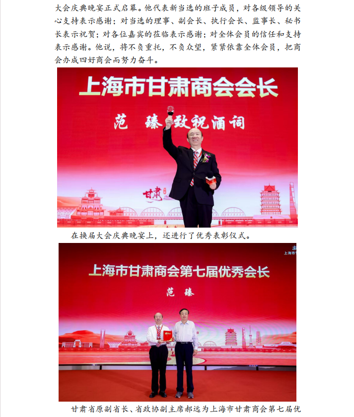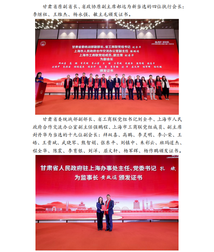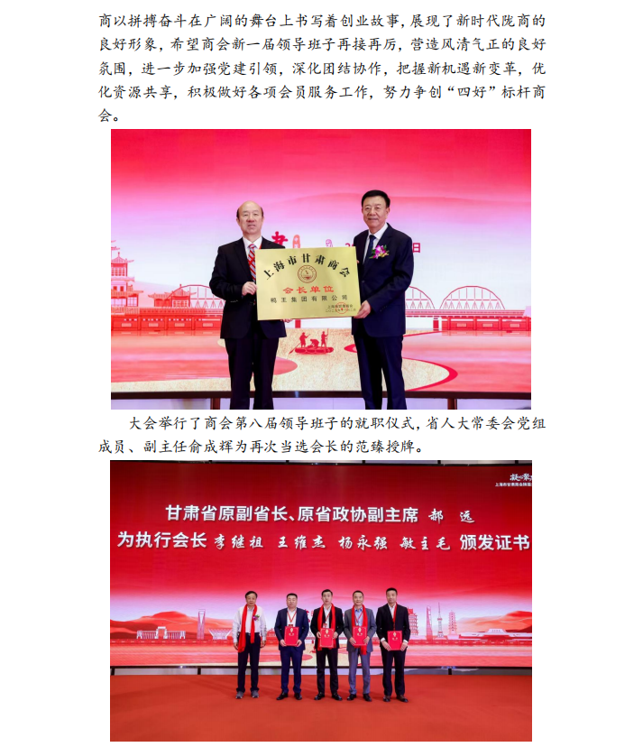 上海市甘肃商会隆重举行换届大会暨第八届第一次会员大会