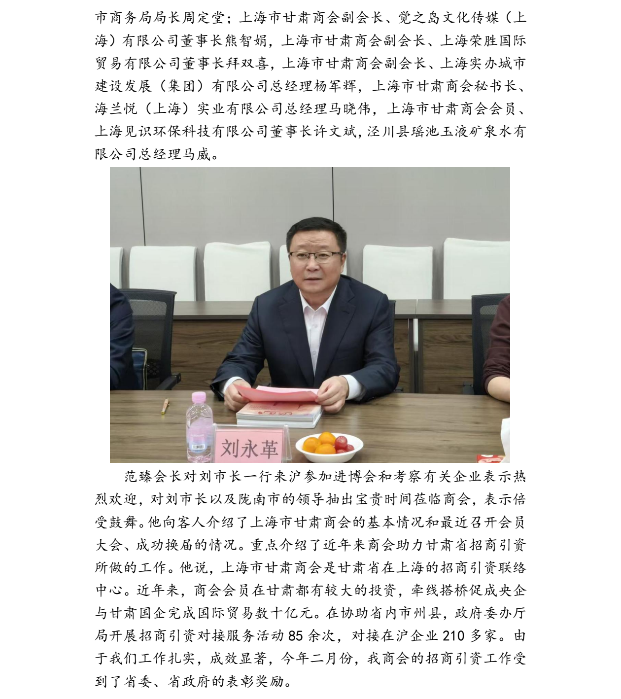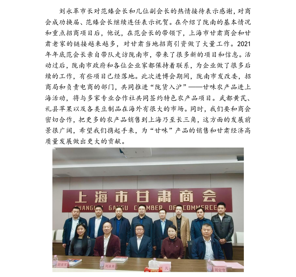 范臻会长与陇南市市长刘永革交流座谈