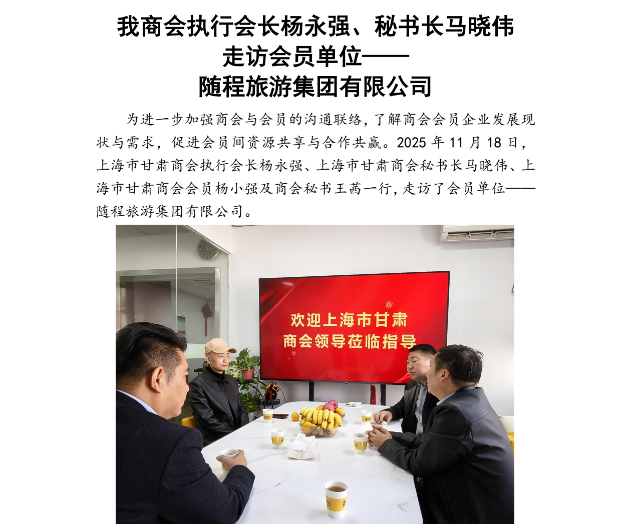 我商会执行会长杨永强 秘书长马晓伟走访会员单位——随程旅游集团有限公司