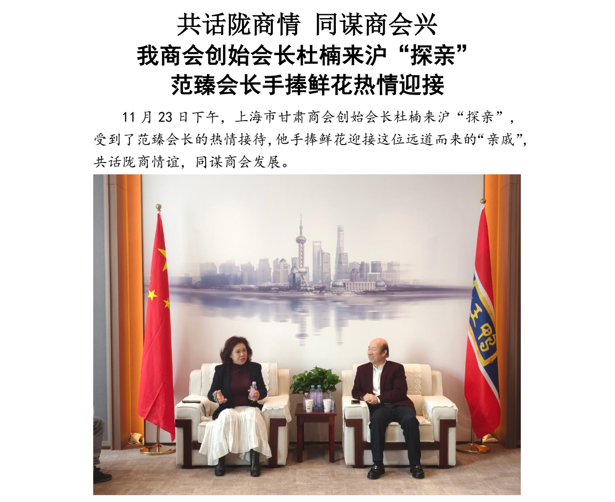 我商会创始会长杜楠来商会“探亲” 范臻会长手捧鲜花热情迎接