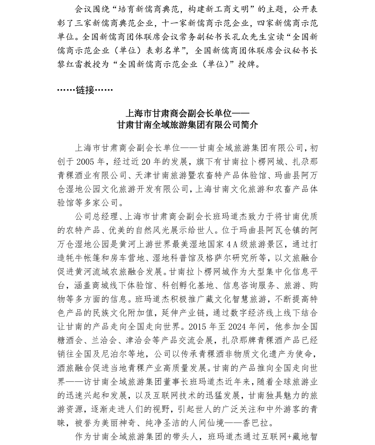 我商会副会长单位甘肃甘南全域旅游集团获评全国新儒商示范企业