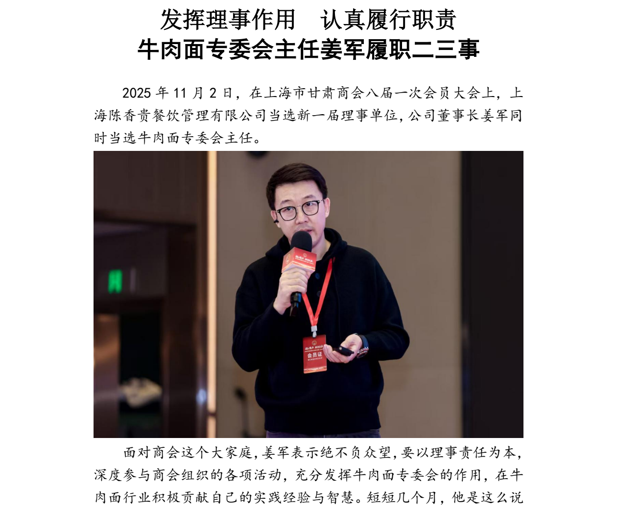 发挥理事作用 认真履行职责 | 牛肉面专委会主任姜军履职二三事