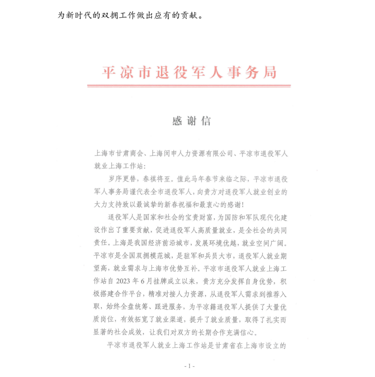 我商会副会长、人力资源专委会主任单位闵申人力资源帮助退役军人就业获赞誉