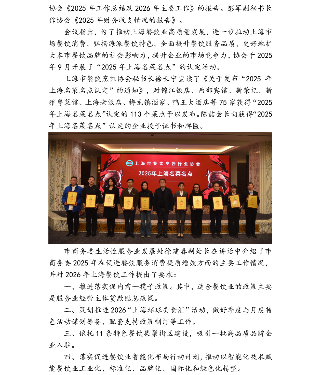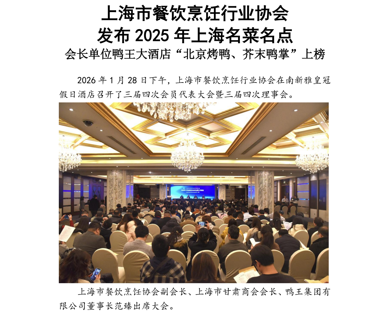 会长单位鸭王大酒店“北京烤鸭、芥末鸭掌”上榜2025年上海名菜名点