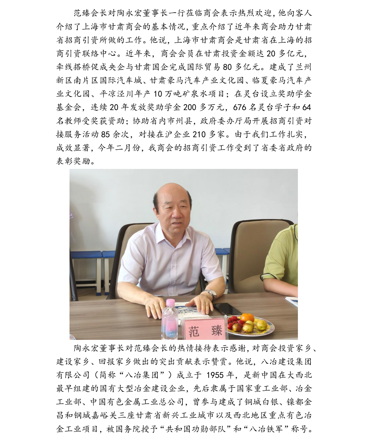 范臻会长会见八冶集团党委书记、董事长陶永宏一行