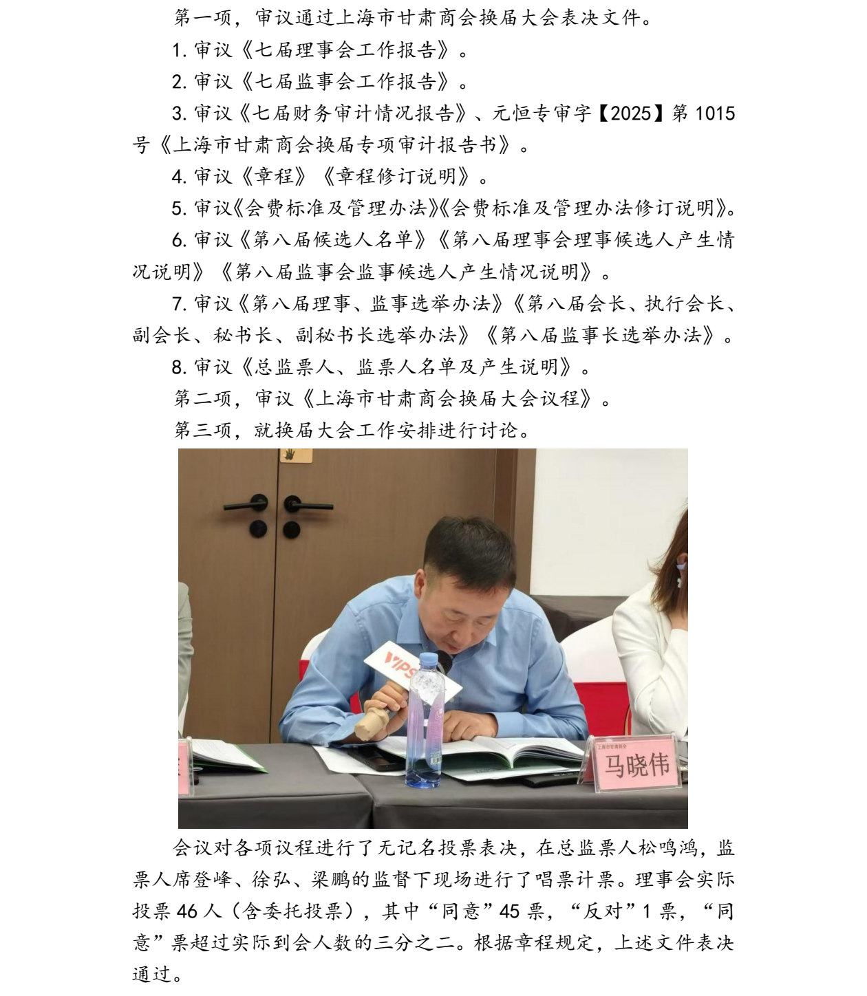 上海市甘肃商会召开七届十一次理事会 表决通过了换届文件和有关事项