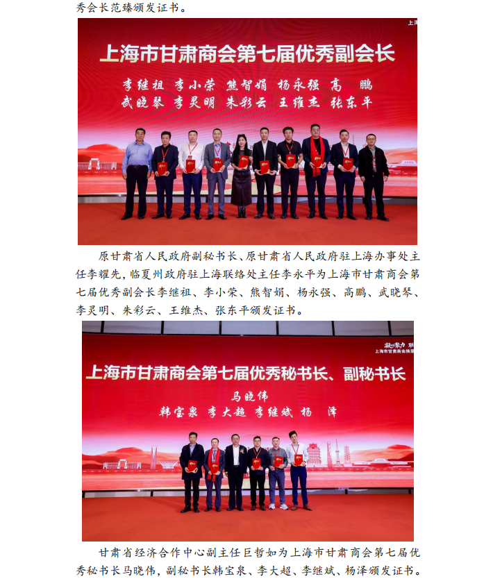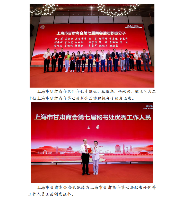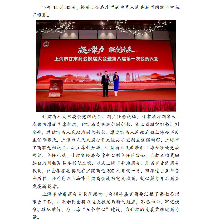 上海市甘肃商会隆重举行换届大会暨第八届第一次会员大会