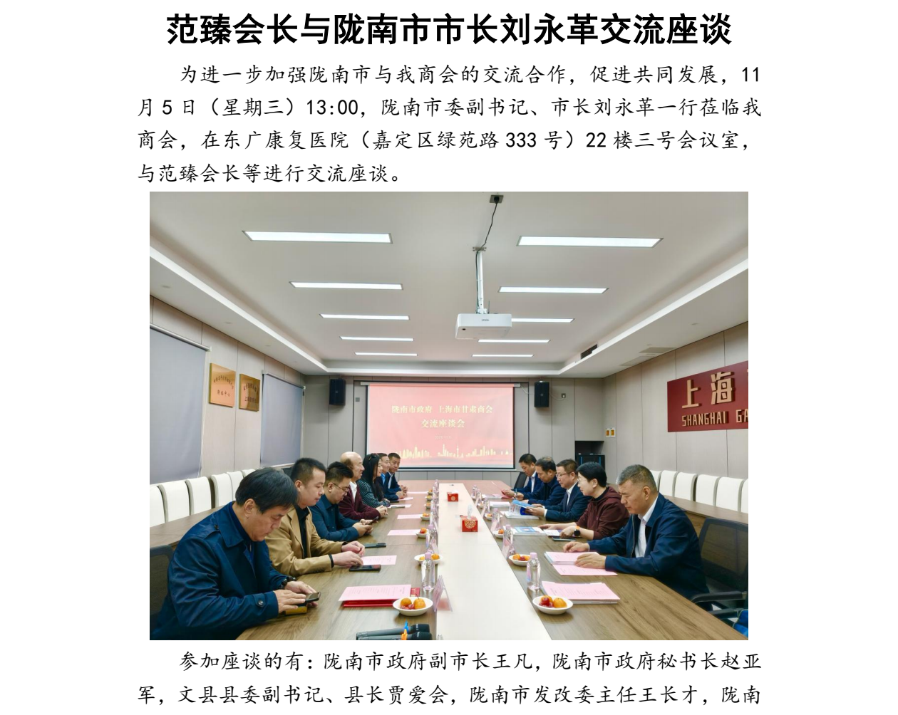 范臻会长与陇南市市长刘永革交流座谈
