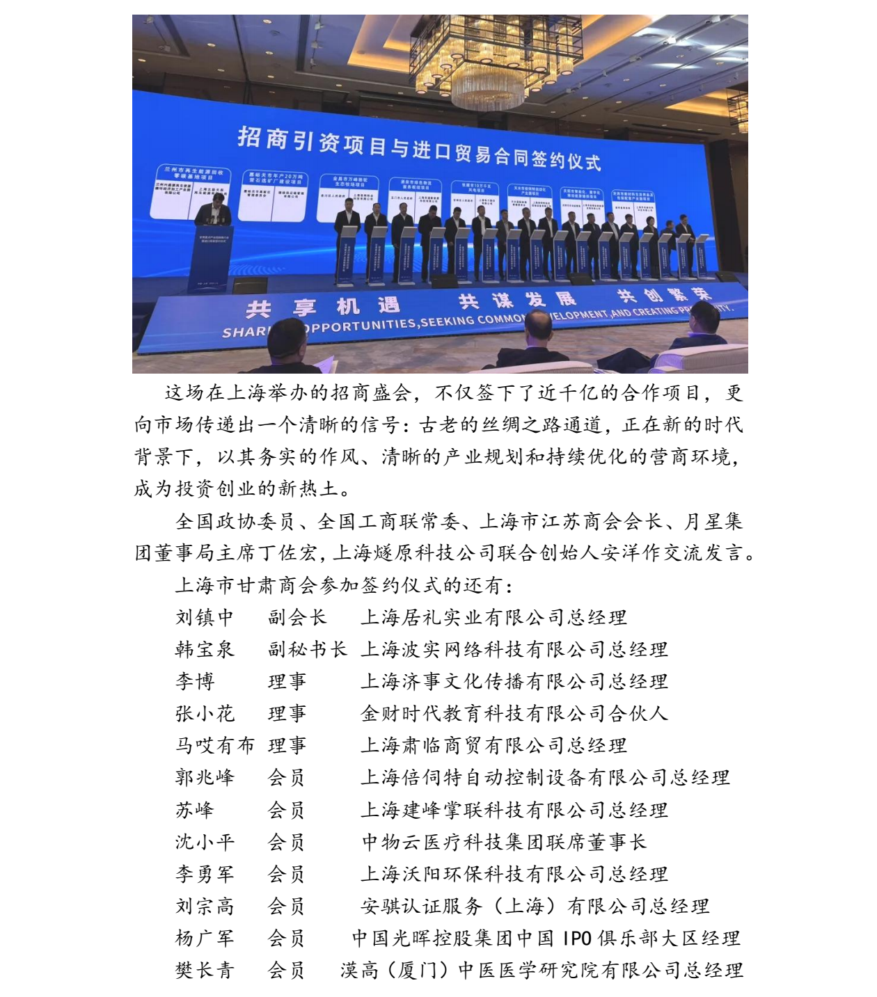 范臻会长率多家会员企业参加甘肃重点产业招商推介会暨进口贸易签约仪式