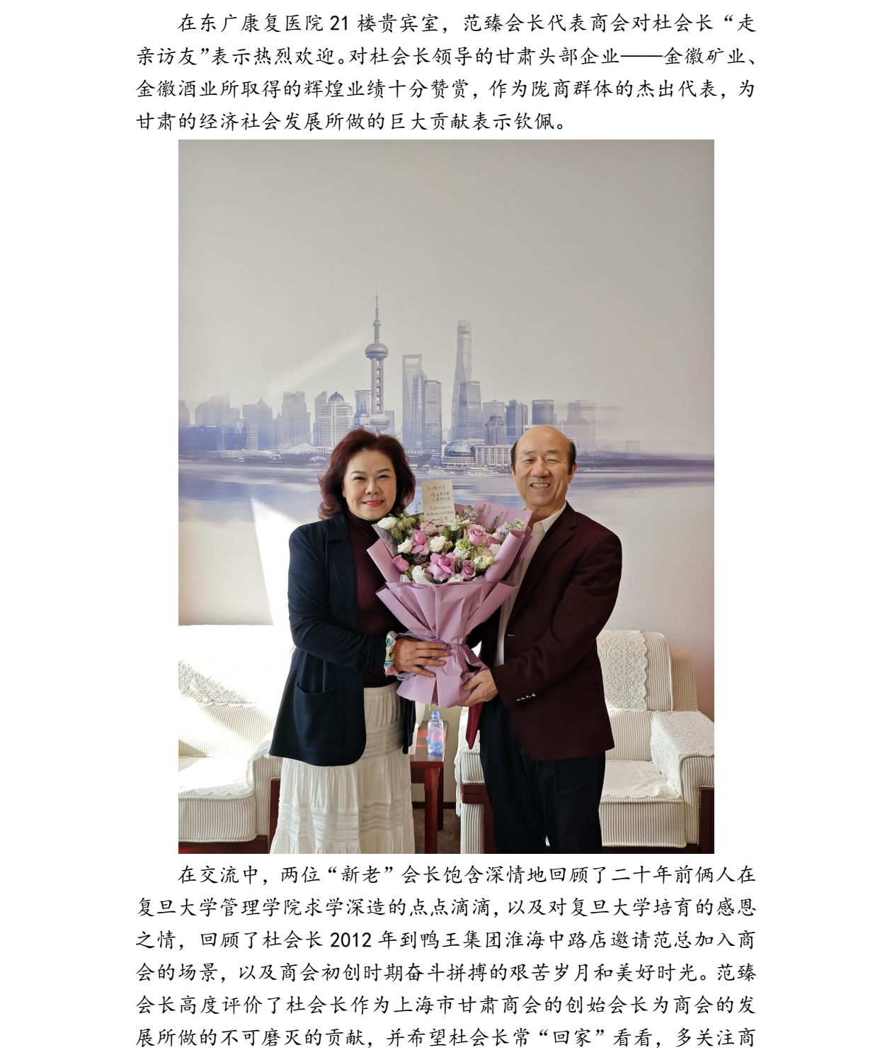 我商会创始会长杜楠来商会“探亲” 范臻会长手捧鲜花热情迎接