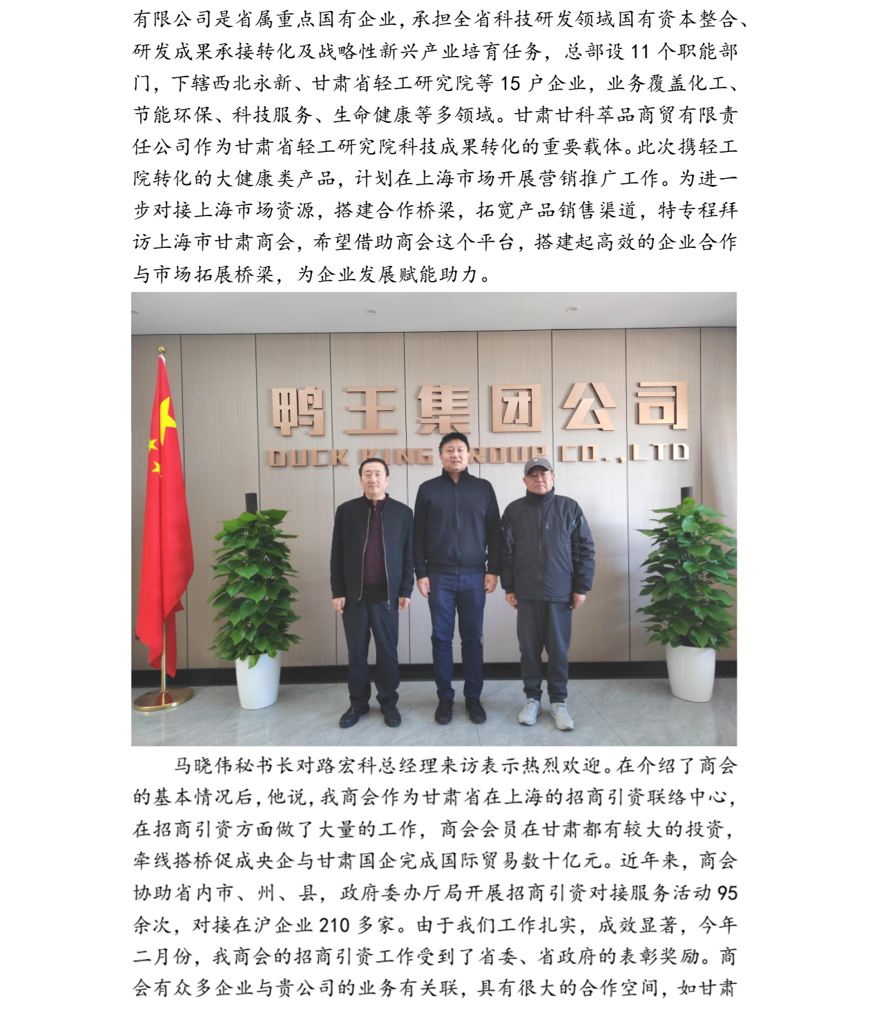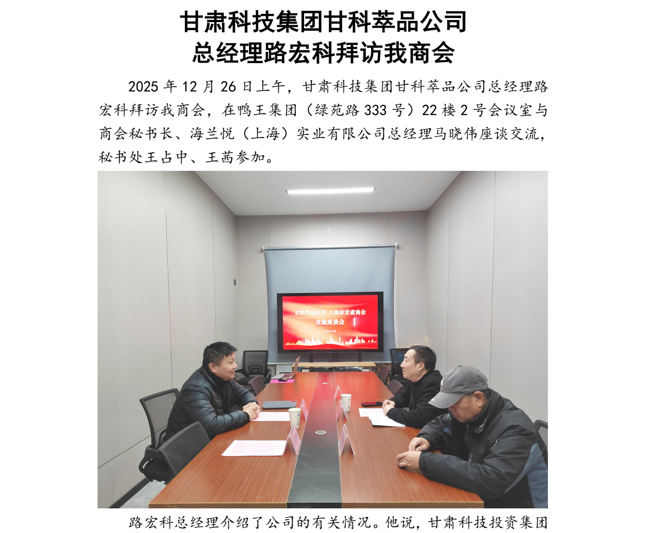 甘肃科技集团甘科萃品公司总经理路宏科拜访我商会
