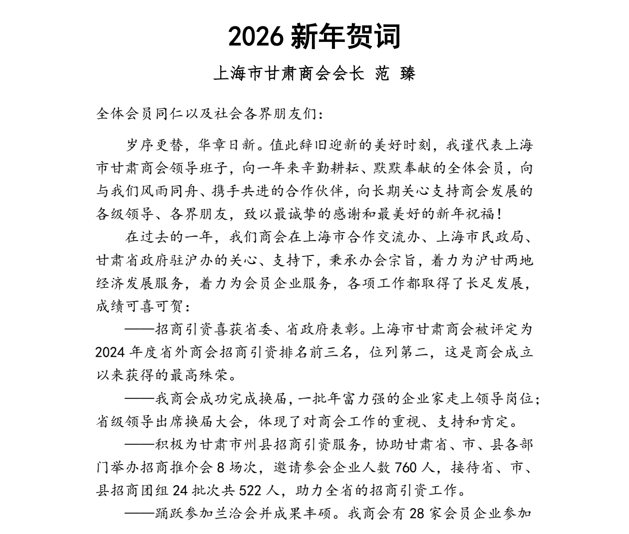 上海市甘肃商会祝全体会员2026新年快乐!